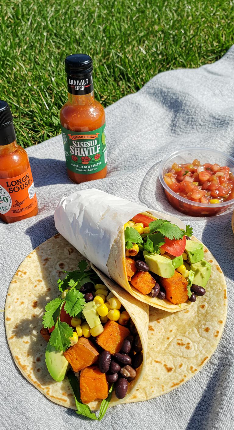 Roasted sweet potatoes and smoky black beans make a cozy, colorful wrap that’s perfect for picnics or quick lunches.