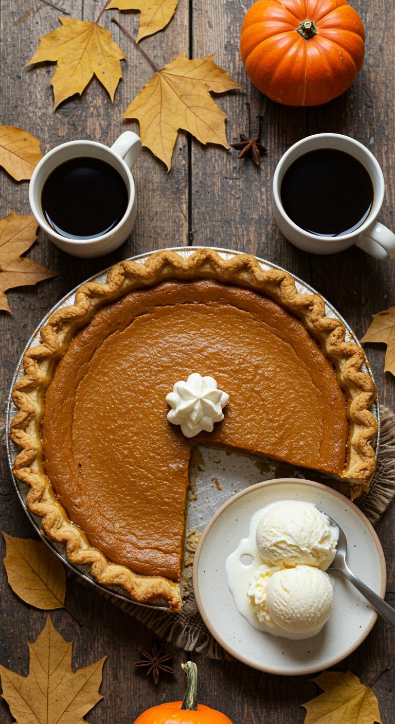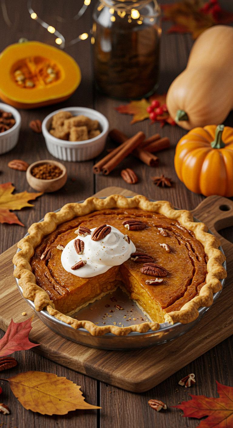 Warm, spiced pumpkin pie with a flaky crust—perfect for cozy holiday gatherings.