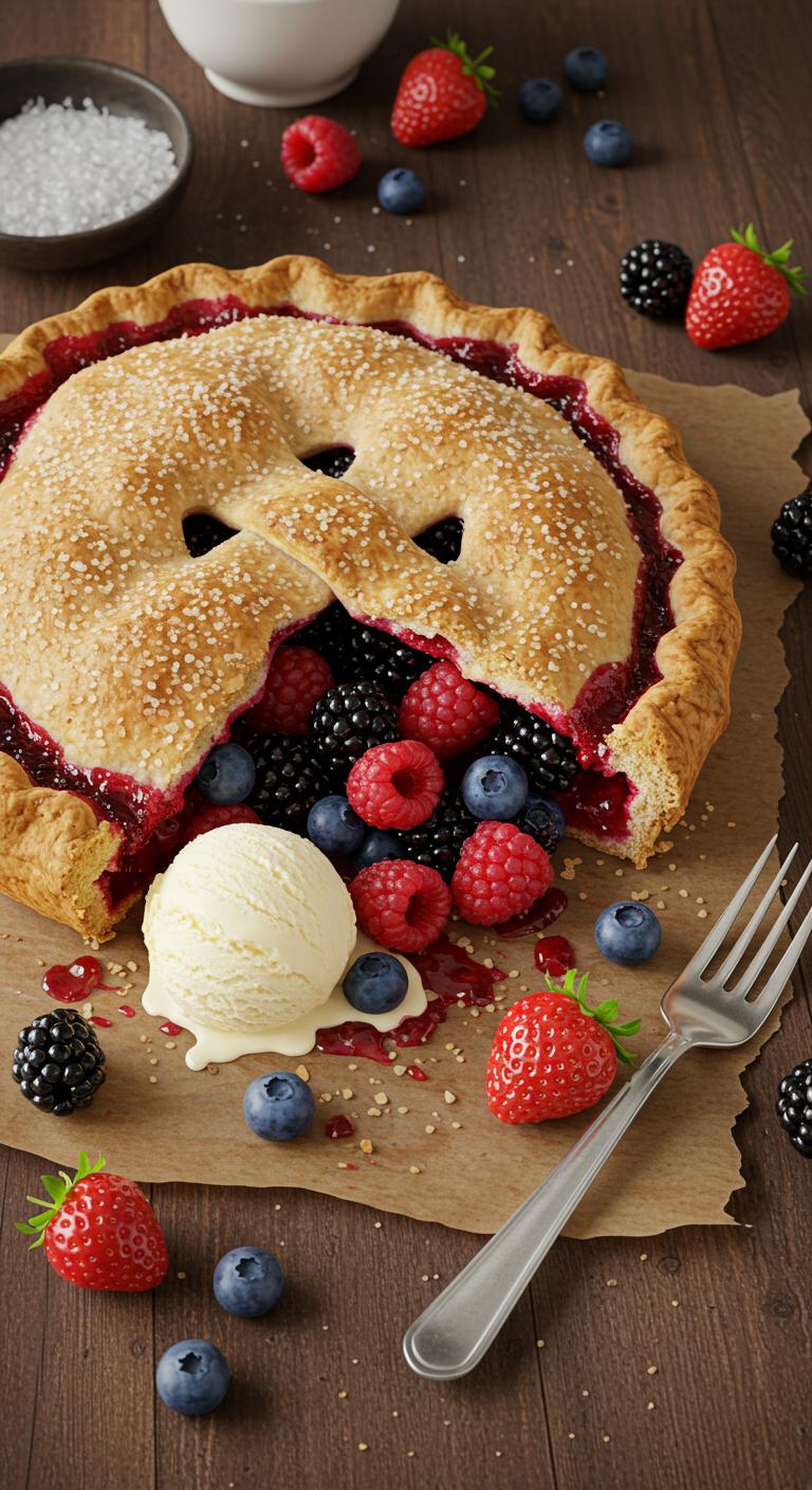 A Rustic Mixed Berry Pie — bright, jammy berries wrapped in flaky, golden crust.