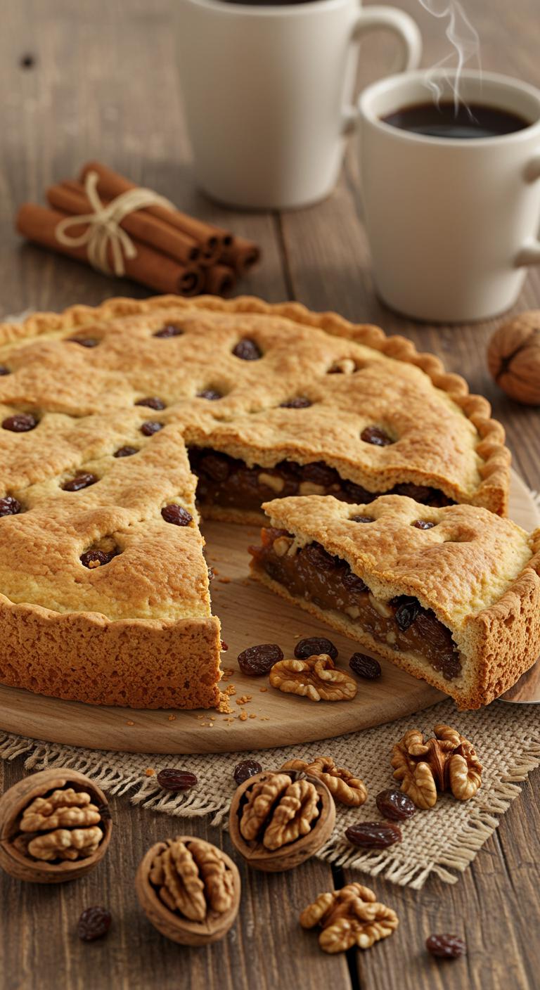 Sweet, nutty, and perfectly spiced — this Raisin and Walnut Pie is cozy comfort in every slice.
