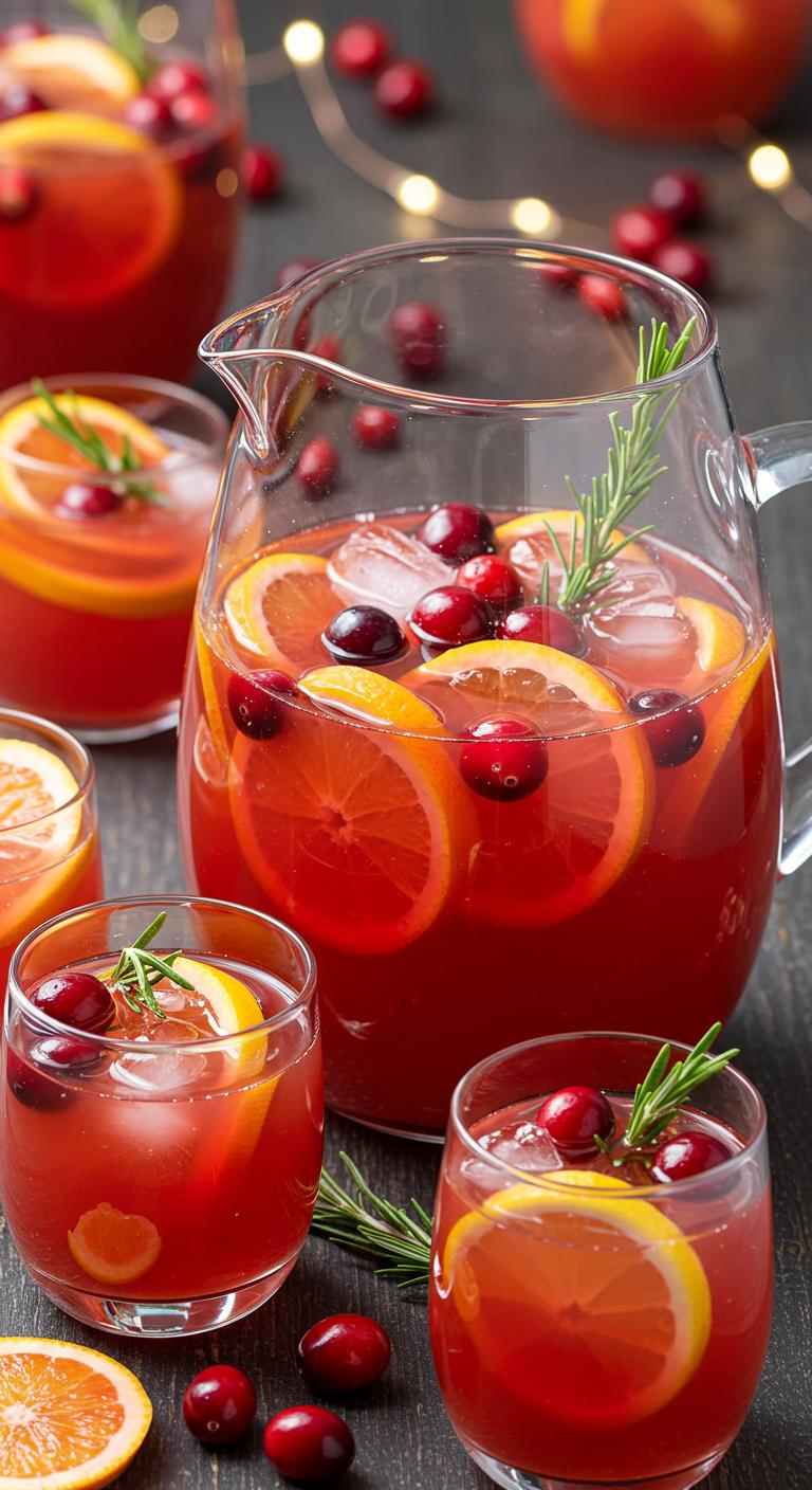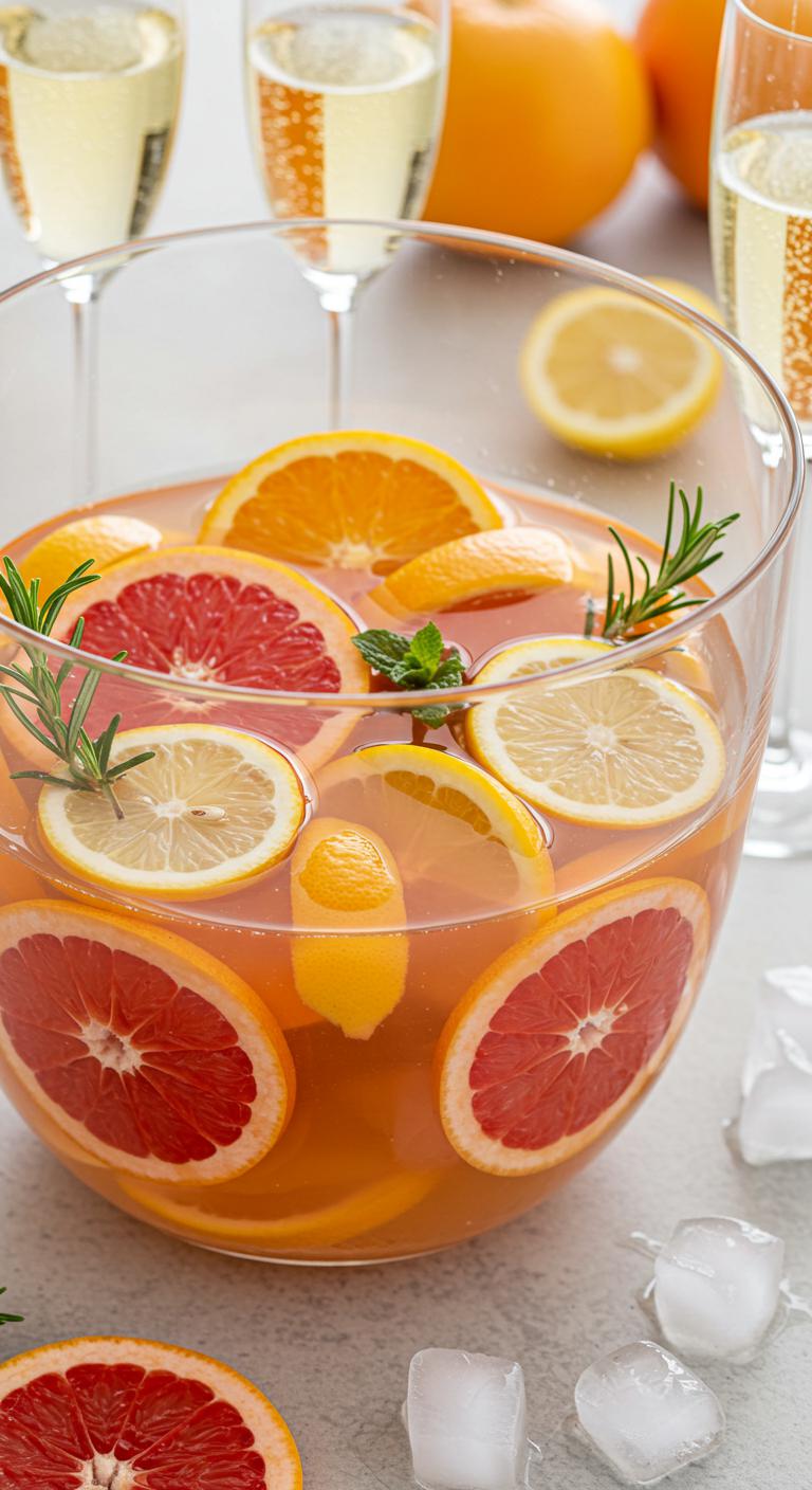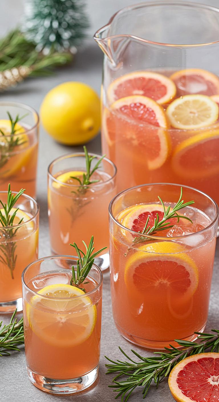 - Pour into glasses, garnish with a sprig of rosemary and a citrus slice, and serve immediately.