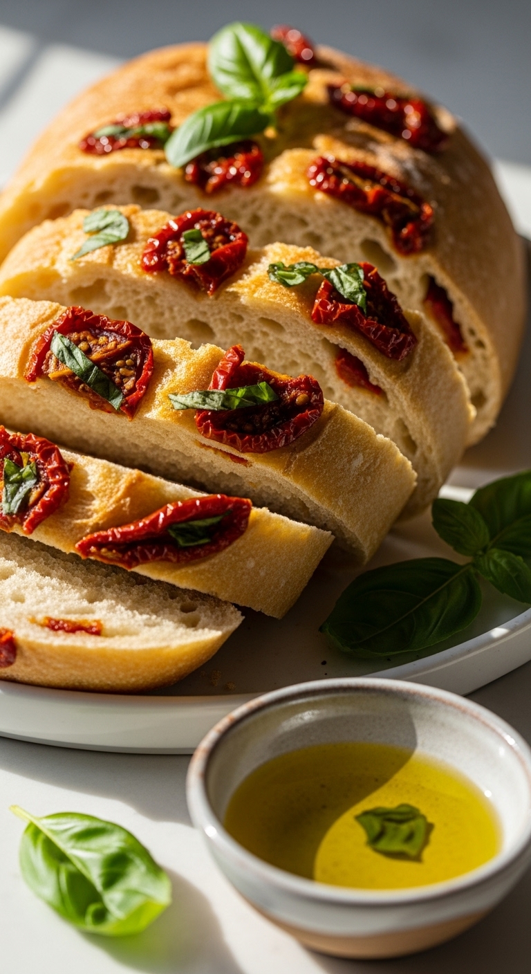 10. Honey Oat Sourdough Bread with Sun-Dried Tomatoes & Basil