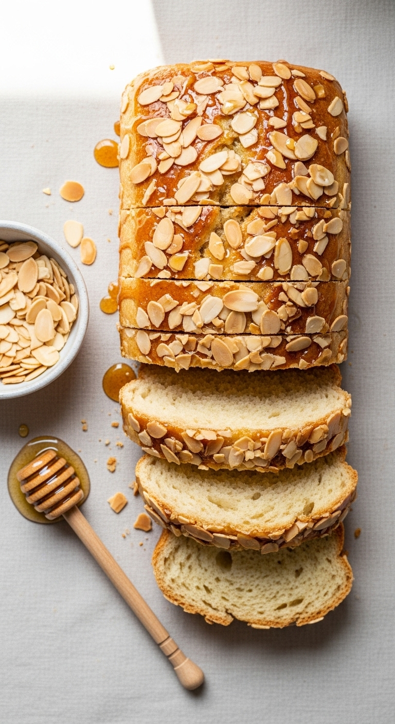 This almond and honey swirl honey oat sourdough bread is slightly sweet and nutty. Almond flakes add crunch while a subtle honey swirl deepens flavor. It’s elegant for brunch or gifting. You’ll get a tender crumb with crunchy almonds and a light sweet finish. The loaf smells like toasted almonds and warm honey.