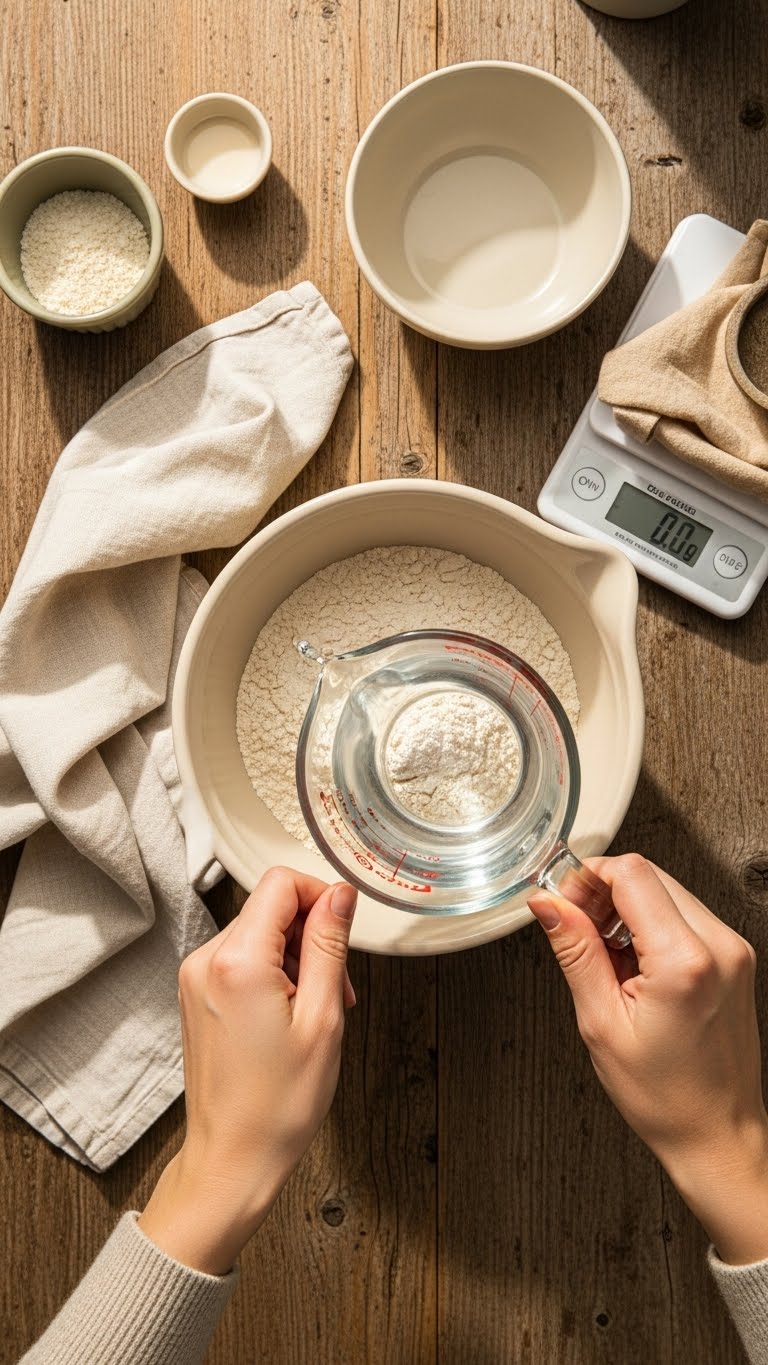 - Use a scale — grams, not cups. Weighing is the fastest way to control hydration.