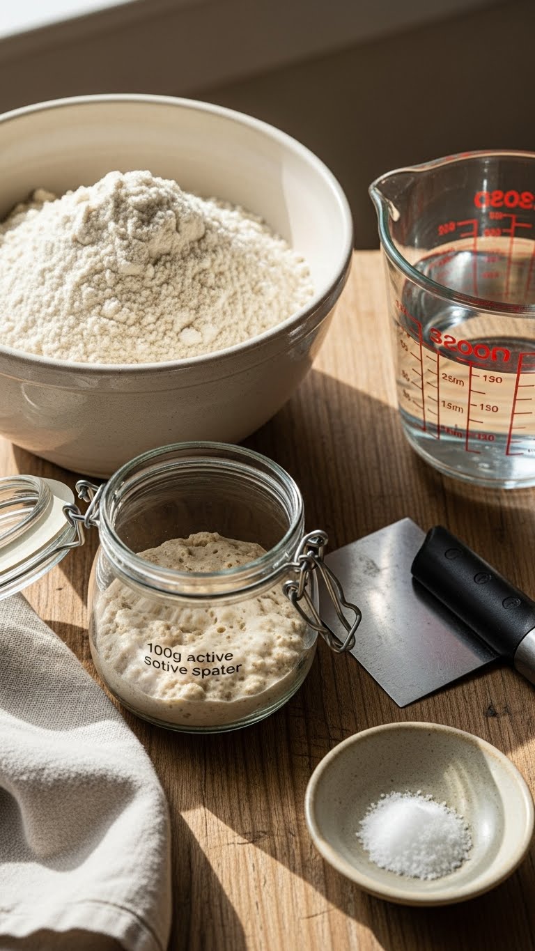 - Shortcut: use 100g active starter mixed directly; it’s forgiving for first bakes.