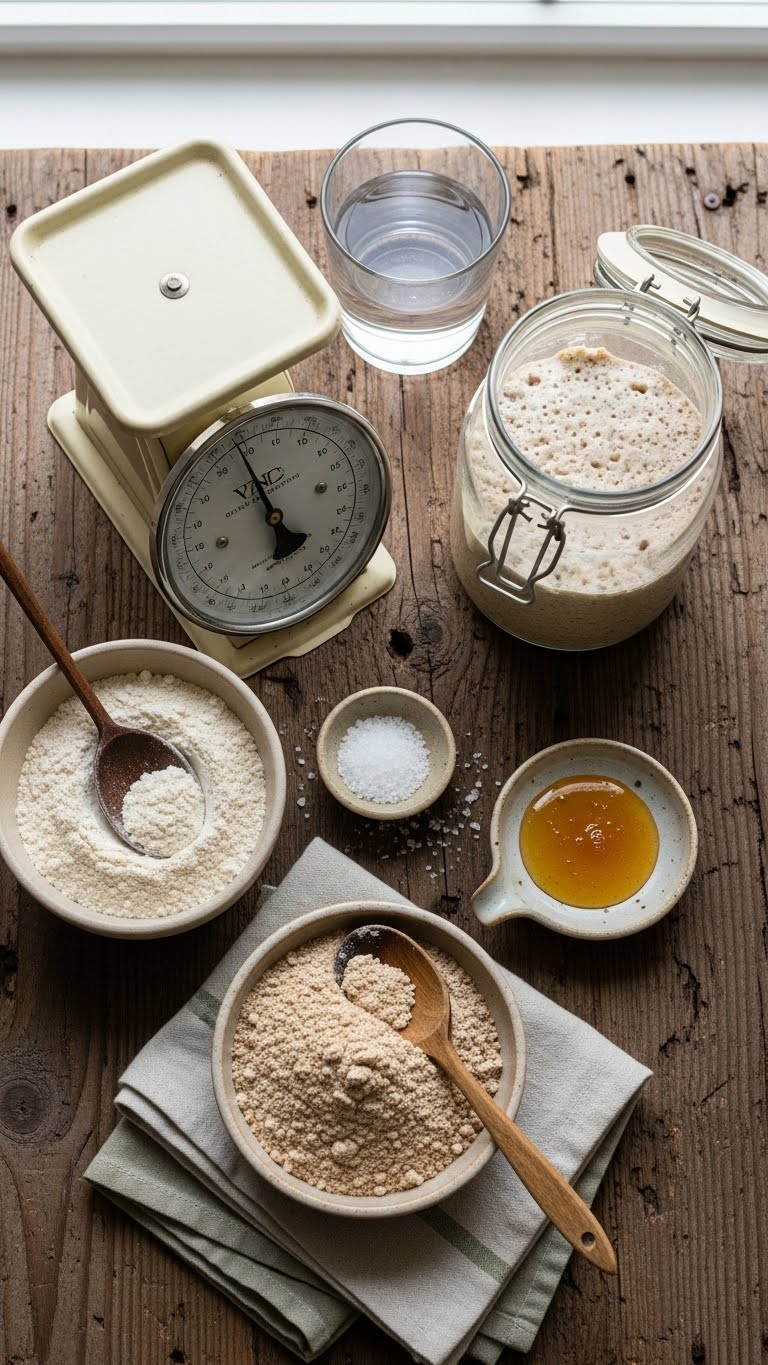 Start with a reliable 100% hydration sourdough starter (equal parts flour and water by weight). You’ll also need: