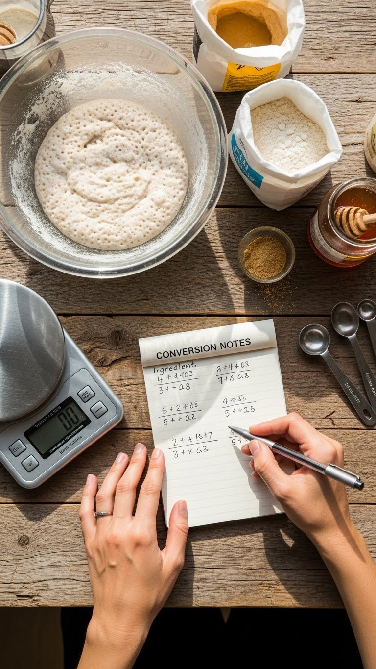 You now have the math, timings, and tips to convert any recipe to use sourdough starter. Try converting a simple bread or muffin recipe first to build confidence.