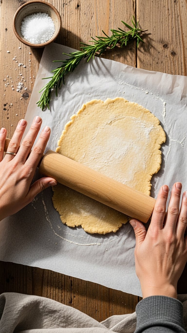 - Problem: edges crumble. Fix: roll slightly thicker (~3 mm) and bake shorter (10–12 minutes), then cool fully on a rack.