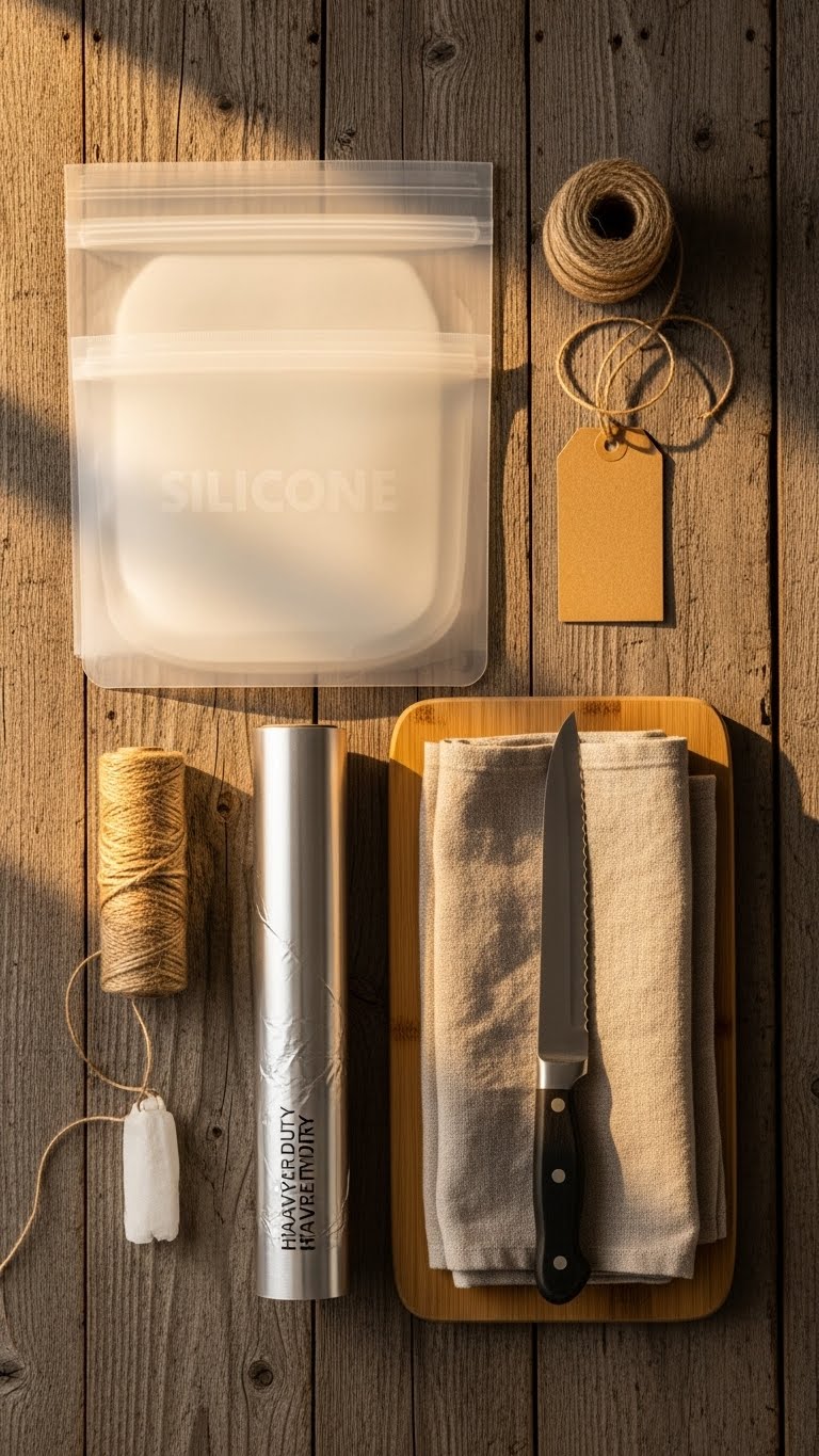 - Reusable freezer bags or heavy-duty plastic wrap
