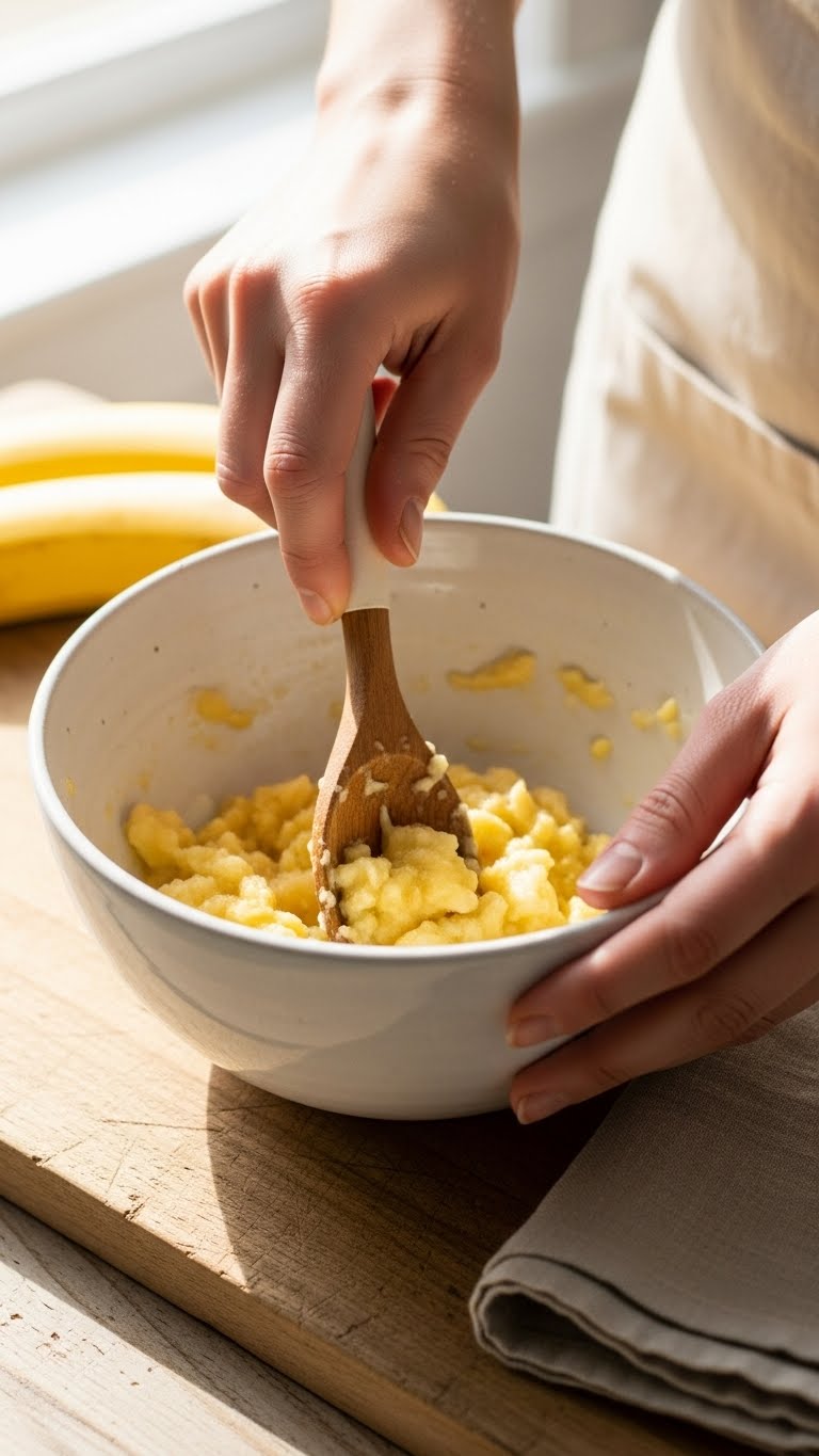 - Mash bananas until smooth but slightly chunky for texture.