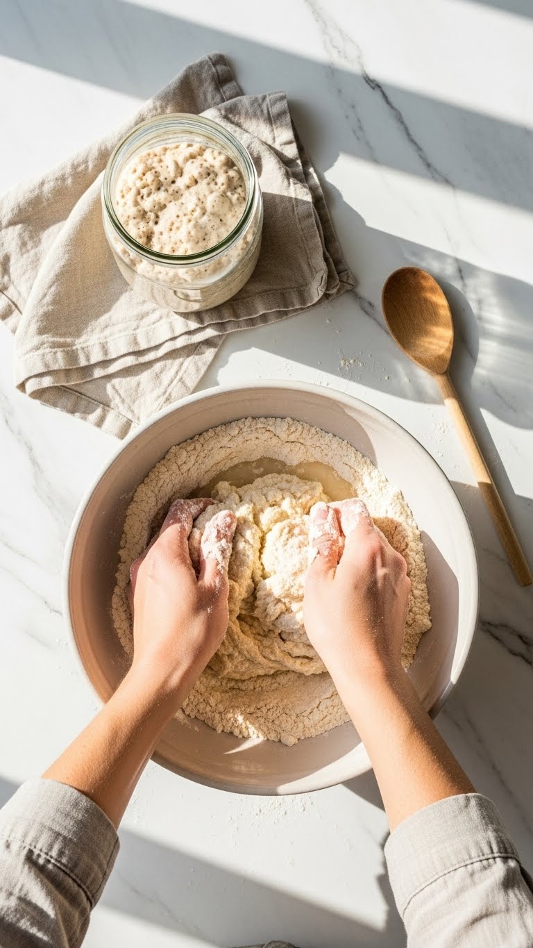 - Dough should be tacky, not sticky. Add tiny water or flour adjustments (±5–10 g) as needed.