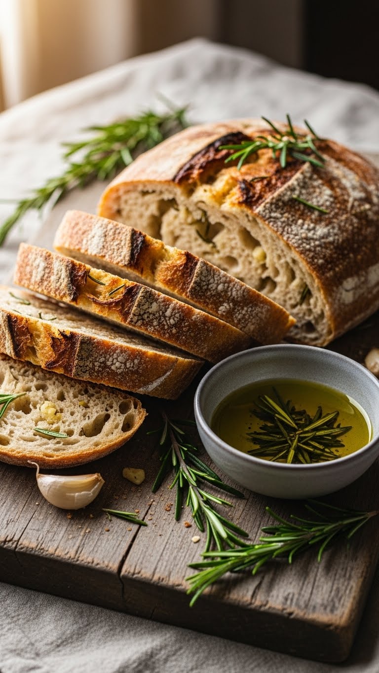 This recipe gives you a loaf with a bold garlic-rosemary aroma and a crust that snaps. Try swapping roasted garlic for garlic oil if you want a more evenly distributed flavor.