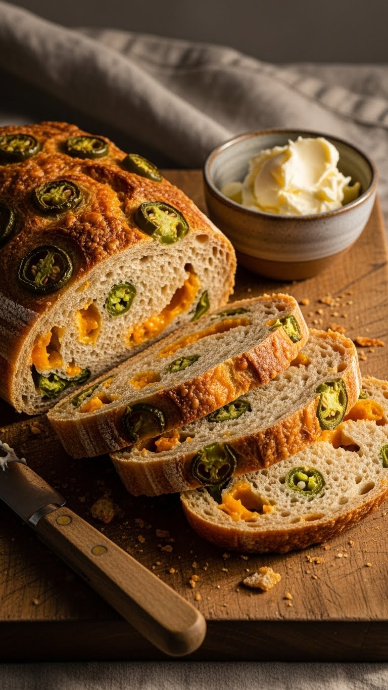 Quick safety tip: If you want milder bread, remove seeds. For more heat, reserve 1 sliced jalapeño for topping.
