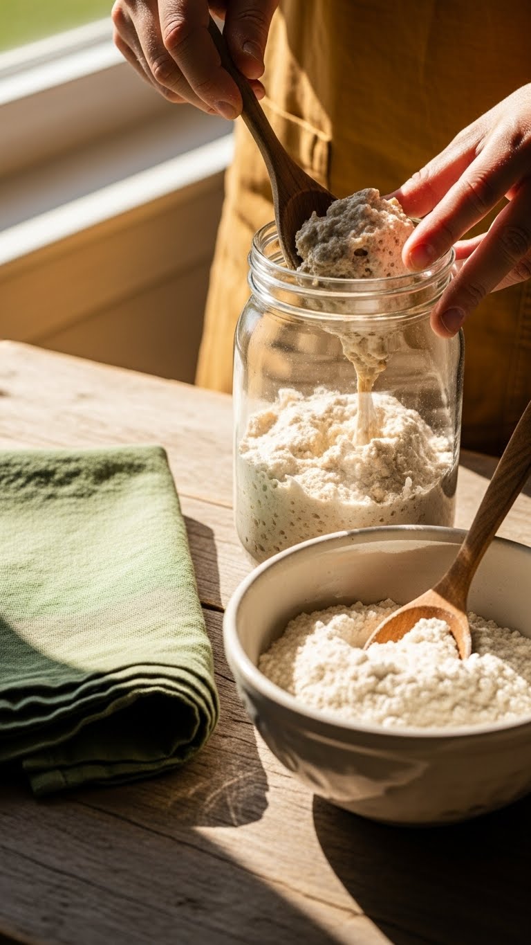 - Feed your starter 6–8 hours before mixing so it's bubbly and peaks. You want it active and responsive.