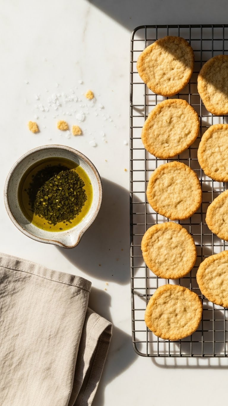 Quick variation: swap half the olive oil for melted butter for a richer taste. Keep hydration similar—too wet and crackers will puff, not crisp.