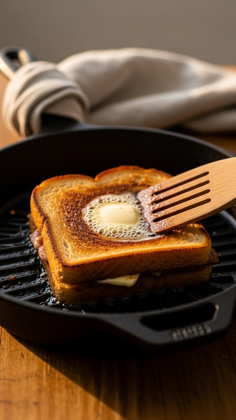 Pro tip: Press the sandwich lightly so the layers contact evenly. Don’t compress hard — the bread should stay airy.