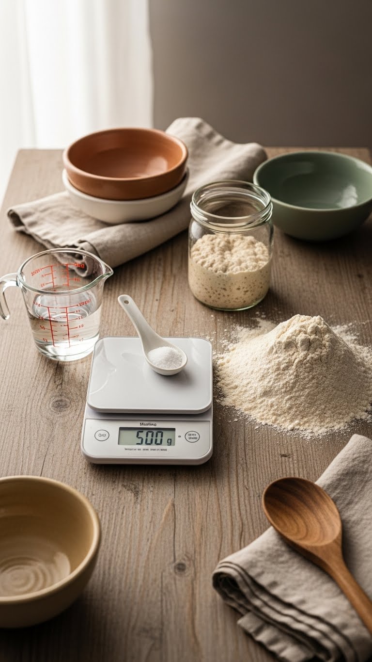 - Basic tools: digital scale, dough bowl, bench scraper, banneton or bowl lined with linen