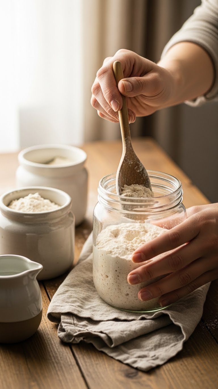 - Temperature matters: feed and ferment starter at 24–26°C (75–79°F) to promote lactic acid (milder) over acetic acid (sharper).