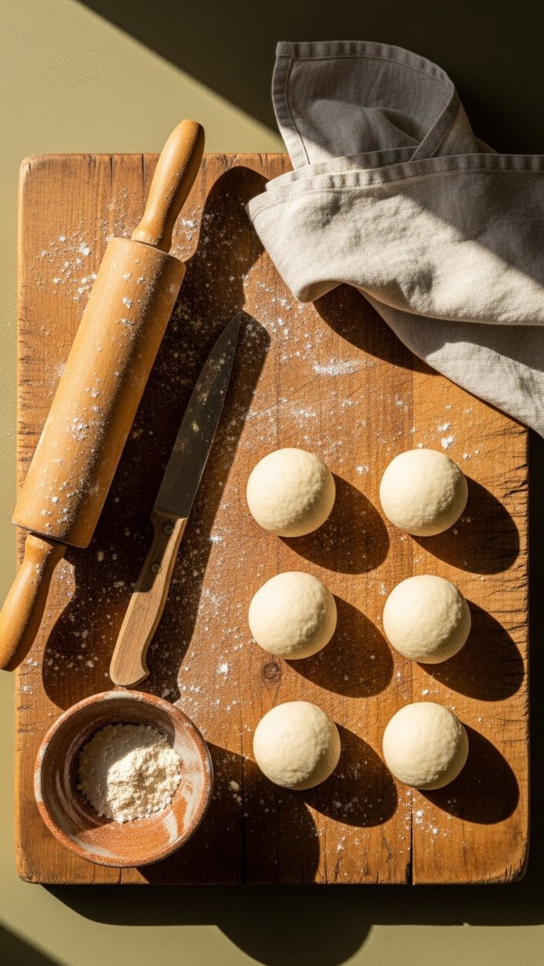 - Roll each into a smooth ball and let rest 5 minutes under a damp towel.