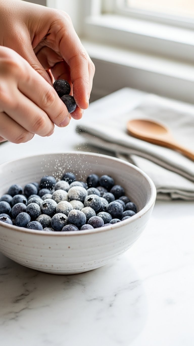 Tip: If blueberries are very wet, pat them dry first. Overly juicy berries increase the chance of sinking and staining.