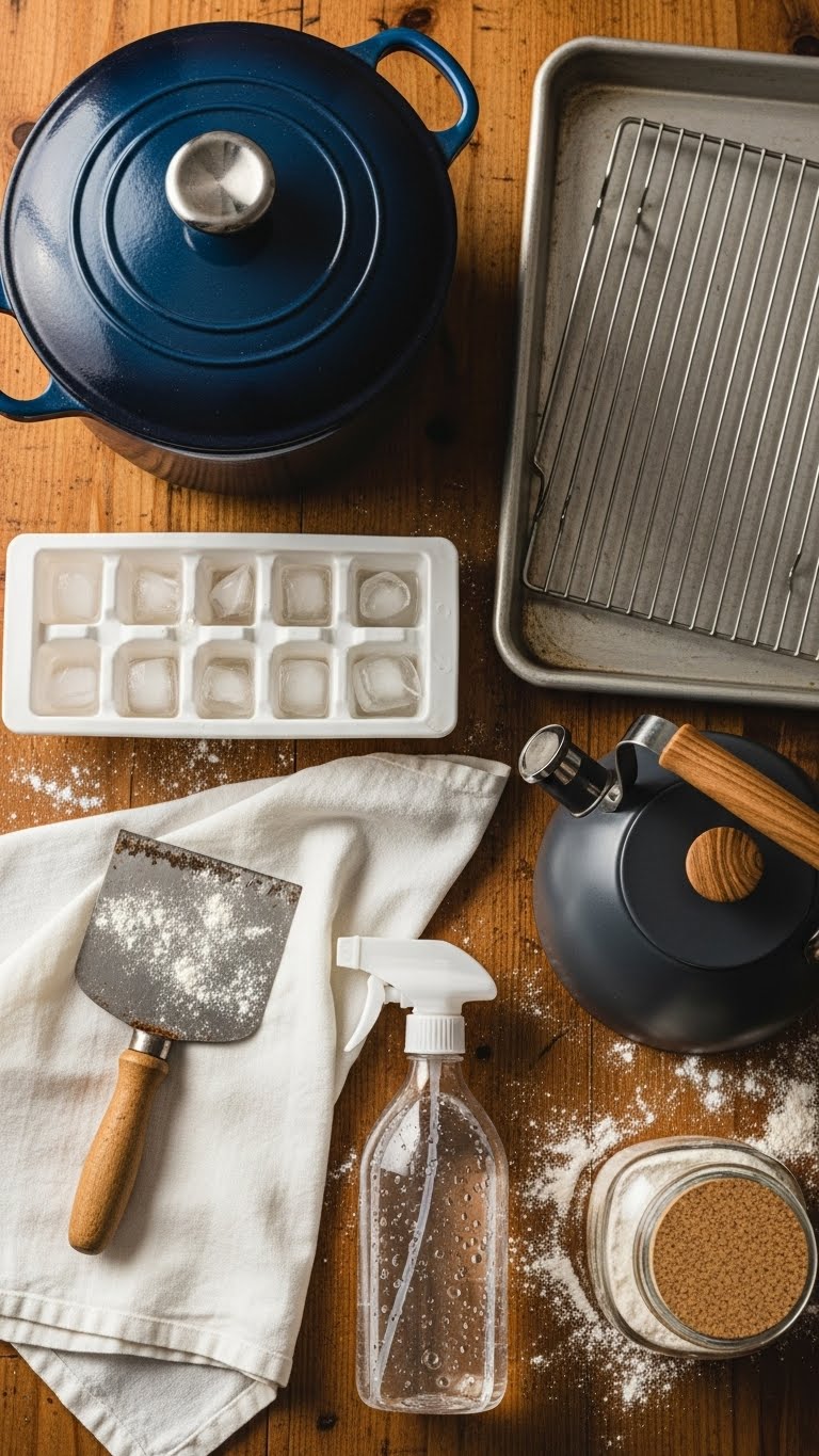 - Tools: Dutch oven with lid, rimmed baking sheet or metal loaf pan, metal cooling rack, kettle or pot for boiling water, spray bottle (optional).