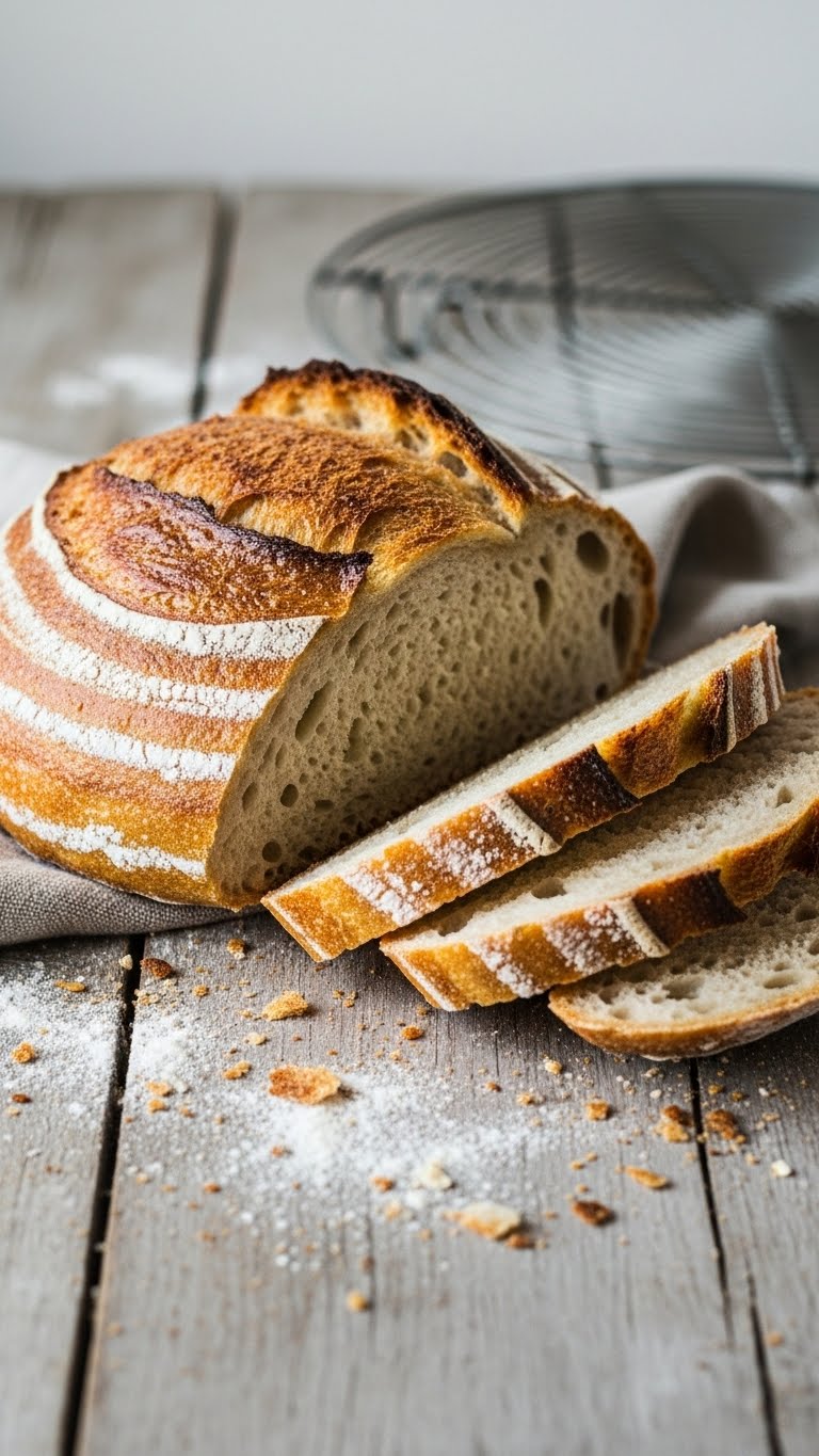 - Bake 15 minutes with steam, then vent oven (open door briefly) and continue baking 20–25 minutes.