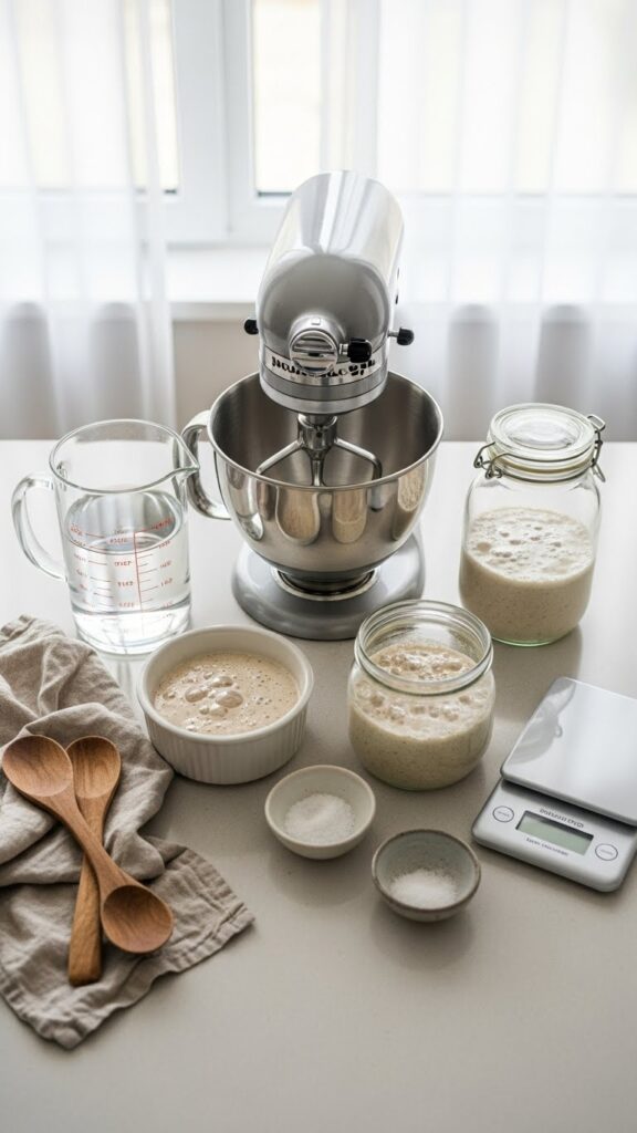 - Large mixing bowl if you prefer to autolyse outside the mixer