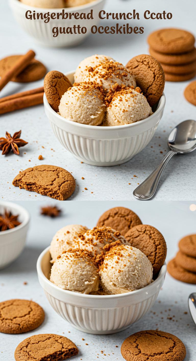 Gingerbread Crunch Gelato — warm-spiced, creamy, and studded with crunchy ginger snaps.