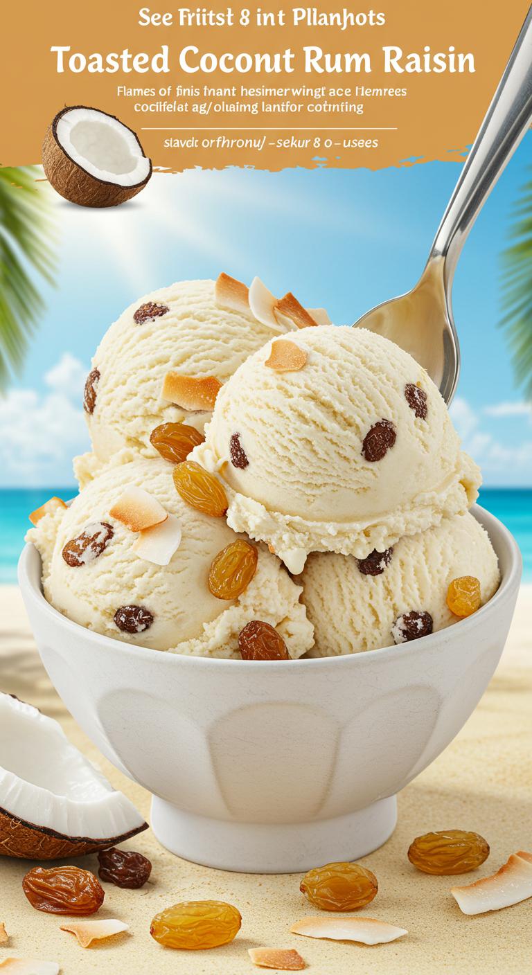 Toasted Coconut Rum Raisin — a boozy, crunchy, tropical twist on classic rum raisin.