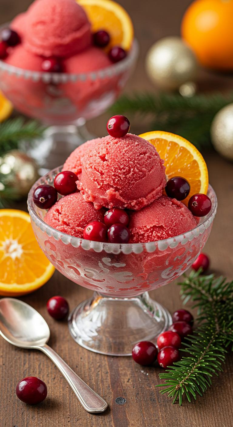 Bright, tangy cranberry-orange sorbet — a festive refresher that’s tart, sweet, and perfectly icy.