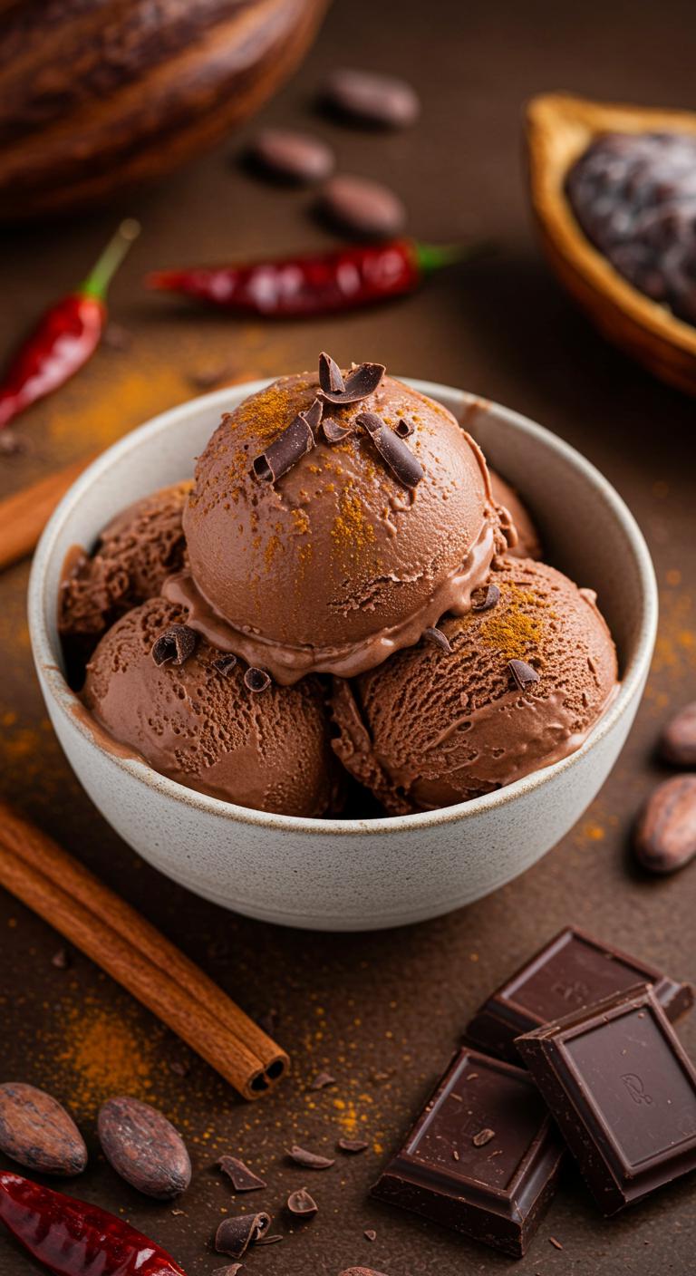 Serve scoops topped with a sprinkle of cinnamon or a few chocolate shavings for an extra festive finish — enjoy the spicy, chocolatey celebration!