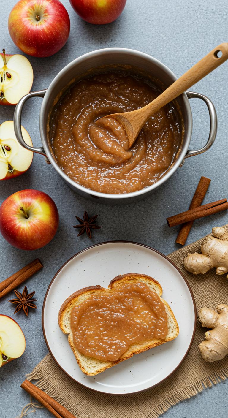 A cozy, warmly spiced apple butter with a ginger kick — perfect on toast or stirred into yogurt.