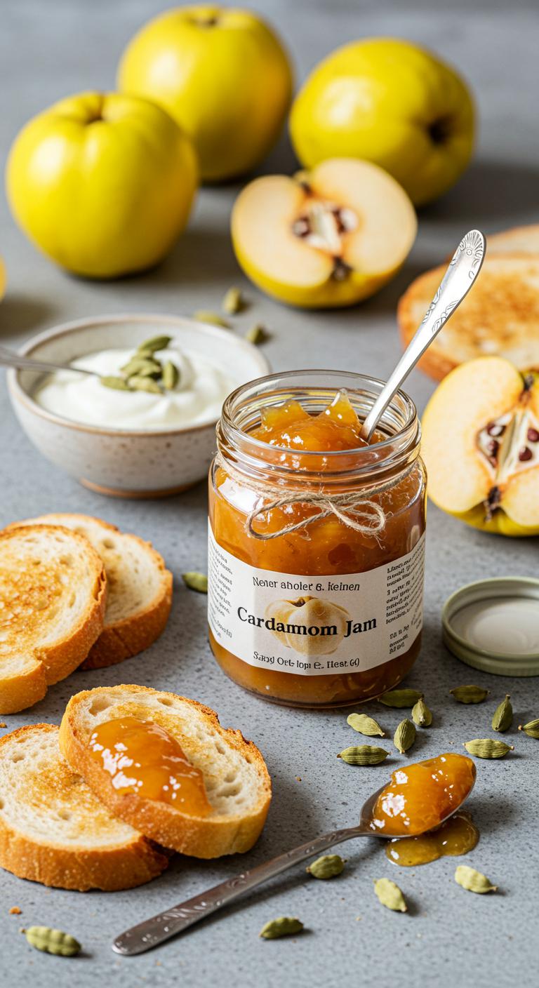 Aromatic Cardamom-Infused Quince Jam — cozy, fragrant, and perfect on toast or stirred into yogurt.