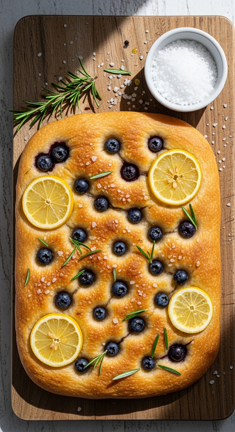 This focaccia-style breakfast bread is airy, olive-oil rich, and dotted with blueberries and lemon. It's a savory-sweet take that’s great for brunch sharing. The crumb is open and olive oil-softened. You’ll love crispy edges, lemon brightness, and berry pops. Serve it warm and tear apart for communal mornings.