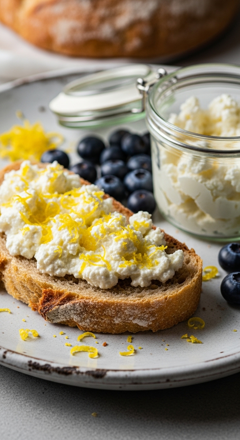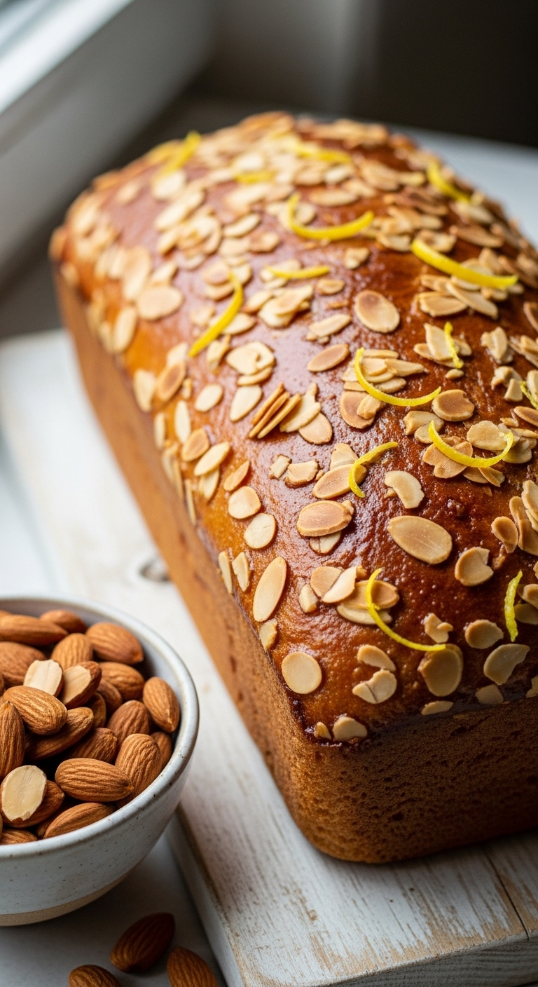 Serve with a smear of almond butter or ricotta. Garnish with toasted almond slivers and lemon zest. Pair with black tea or nutty coffee. Store in airtight container 2–3 days; refrigerate to extend life.