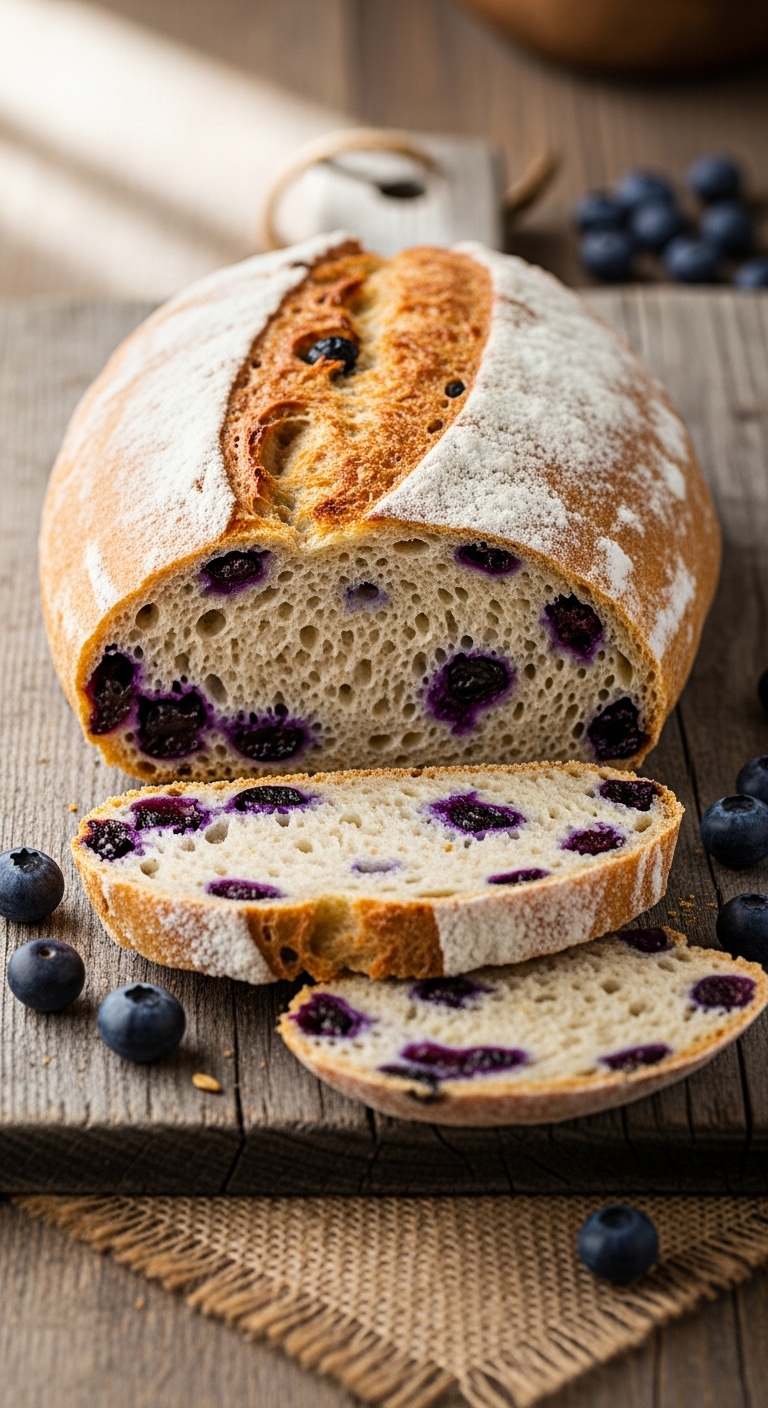 Adding ricotta yields a creamy, rich loaf. This Lemon Blueberry Sourdough Loaf has a tender, moist crumb and gentle tang. The ricotta keeps the texture dense but soft. It’s ideal for a richer brunch or dessert loaf. Expect subtle dairy notes and silky mouthfeel.