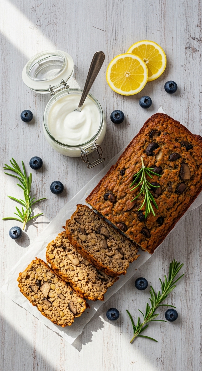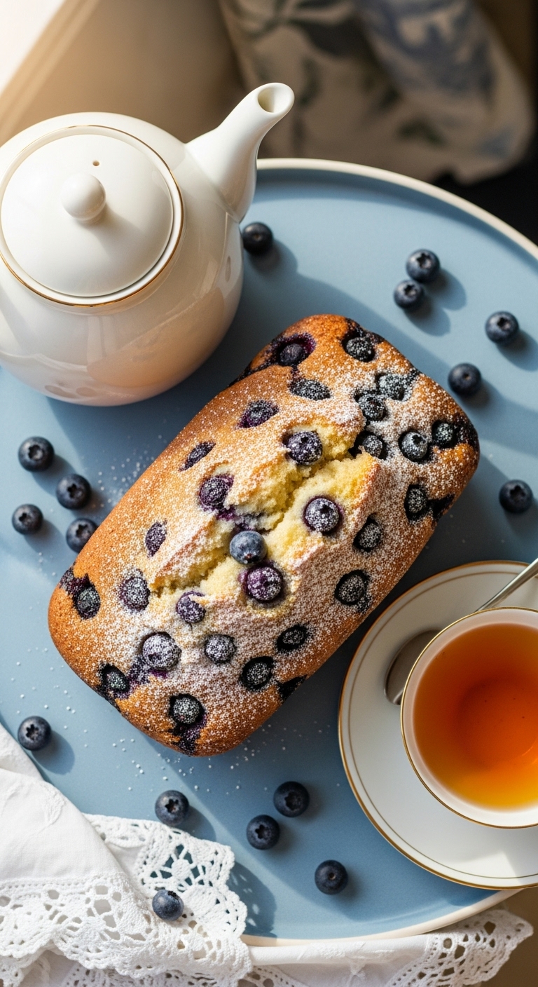 Serve slices warm with a smear of butter or lemon ricotta. Garnish with extra lemon zest and a few fresh blueberries. Pair with coffee, Earl Grey, or a bright sparkling water. Store wrapped at room temperature 2 days or refrigerate up to 4 days. To make ahead, freeze the cooled loaf whole or sliced for up to 3 months.
