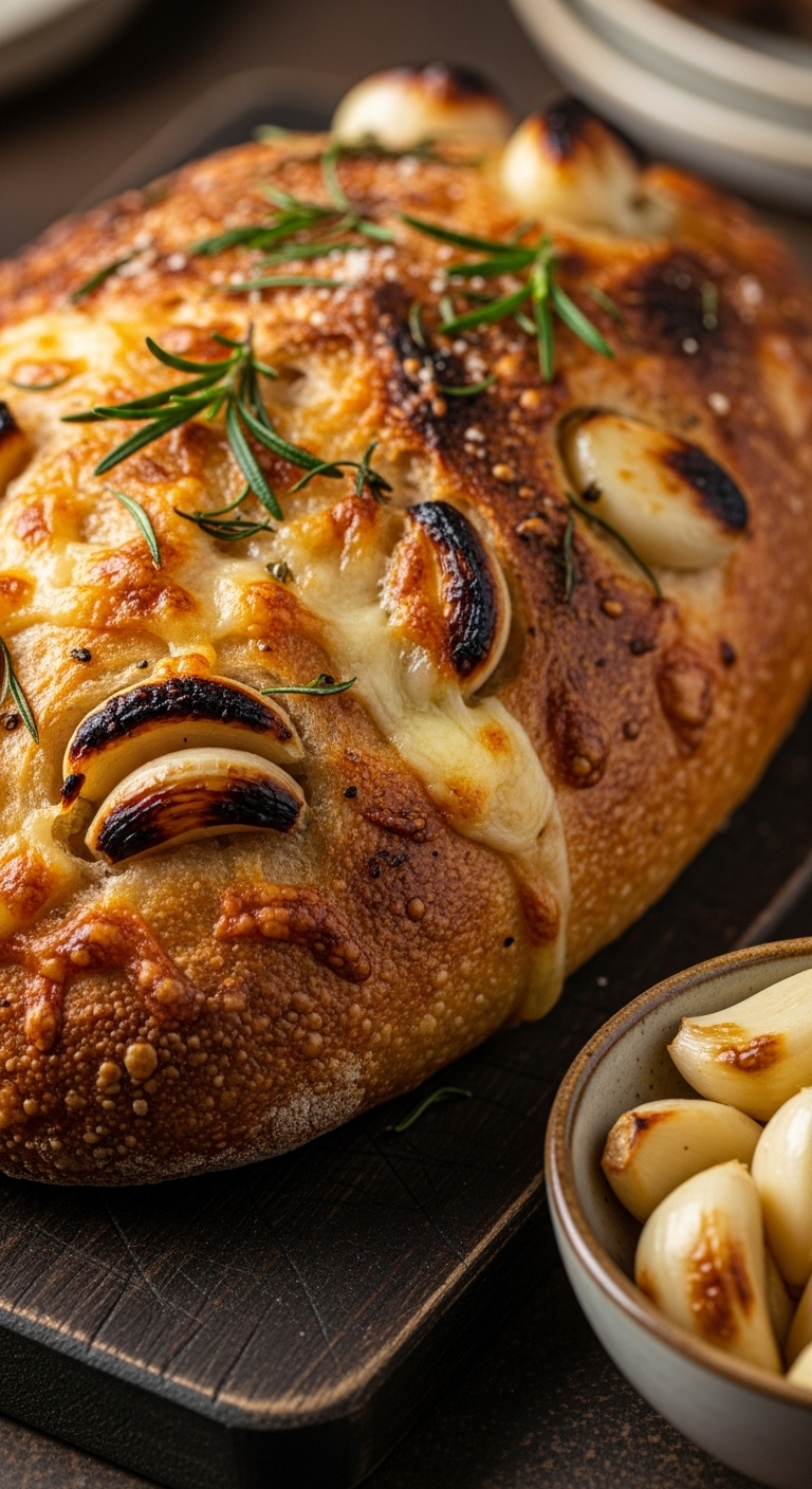 Serve warm with extra roasted garlic butter. Garnish with chopped parsley and cracked pepper. Pair with a simple green salad or tomato soup. Store airtight 2 days, then refrigerate. Reheat in a low oven to refresh the cheese.