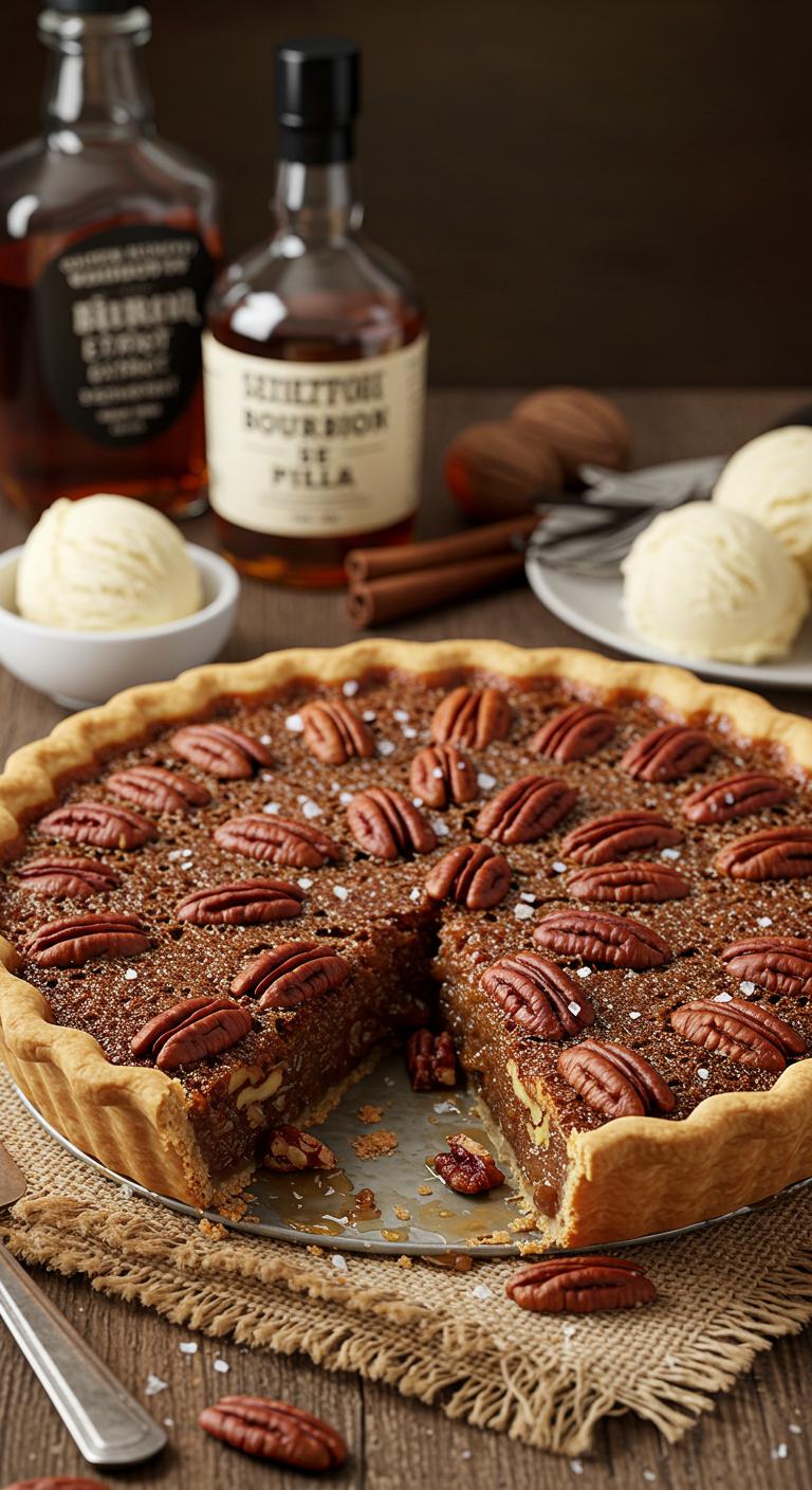 A rich, boozy pecan pie with a crunchy sea-salt finish — chocolatey, nutty, and irresistible.