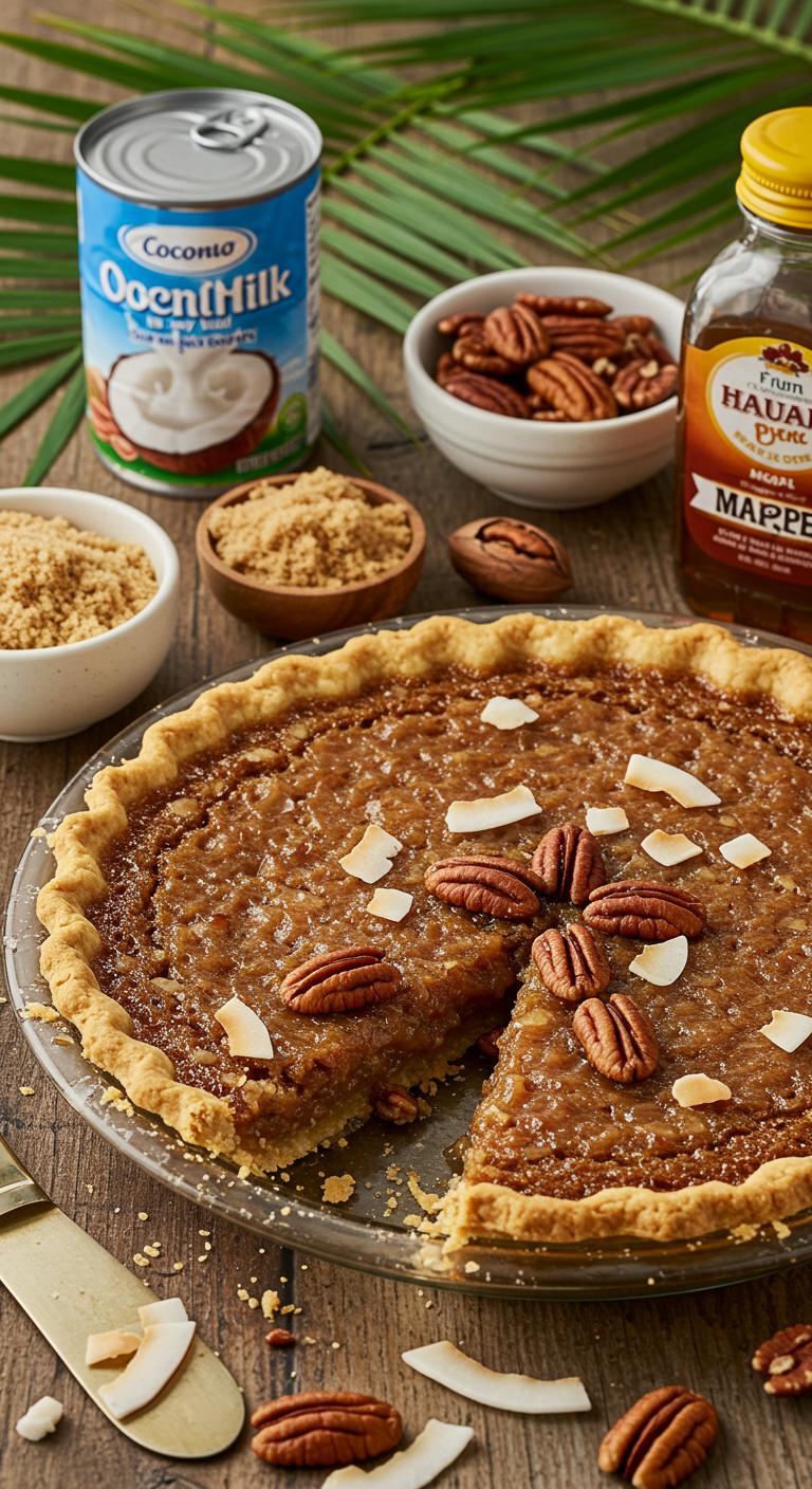 A tropical twist on classic pecan pie — creamy coconut meets crunchy pecans in a gooey, vegan filling.