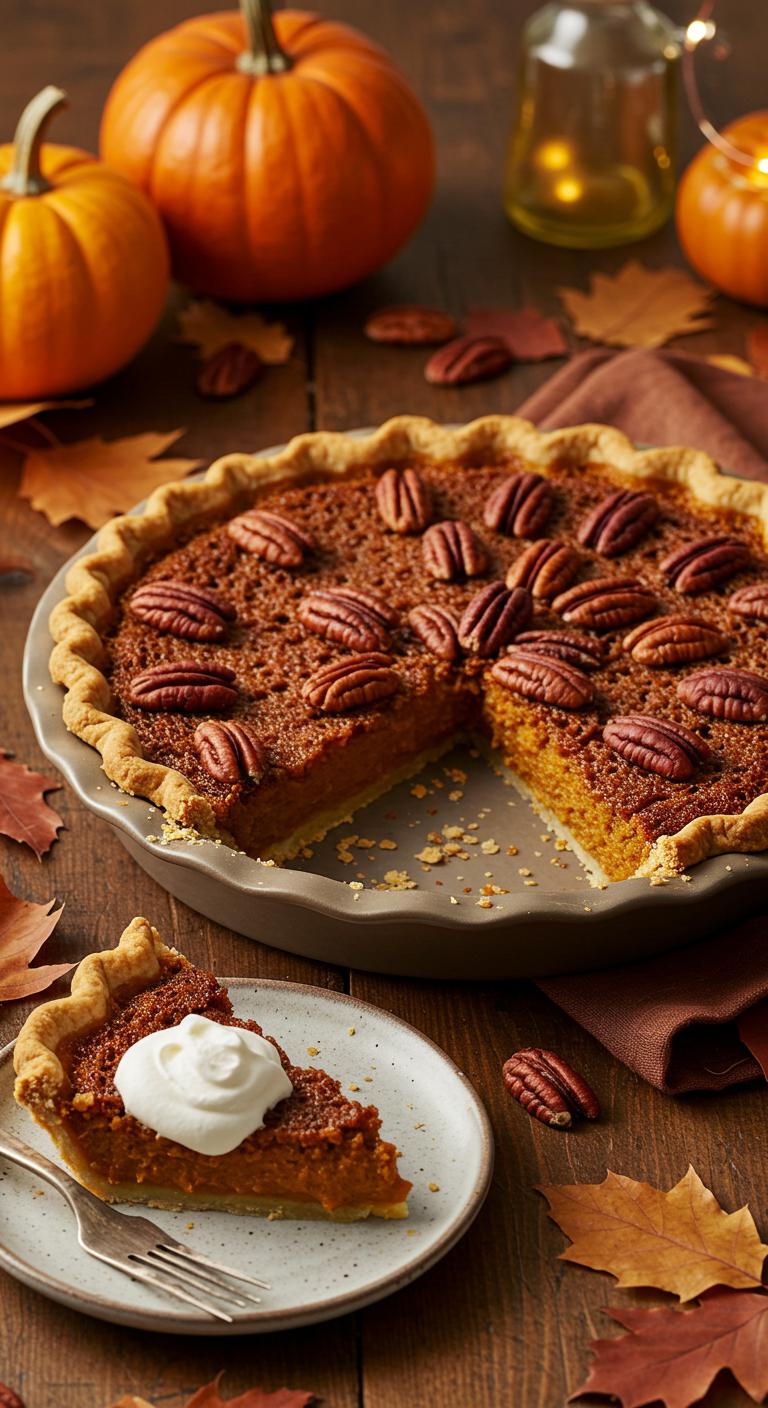 A cozy mashup of pumpkin pie warmth and gooey pecan crunch—perfect for fall gatherings.