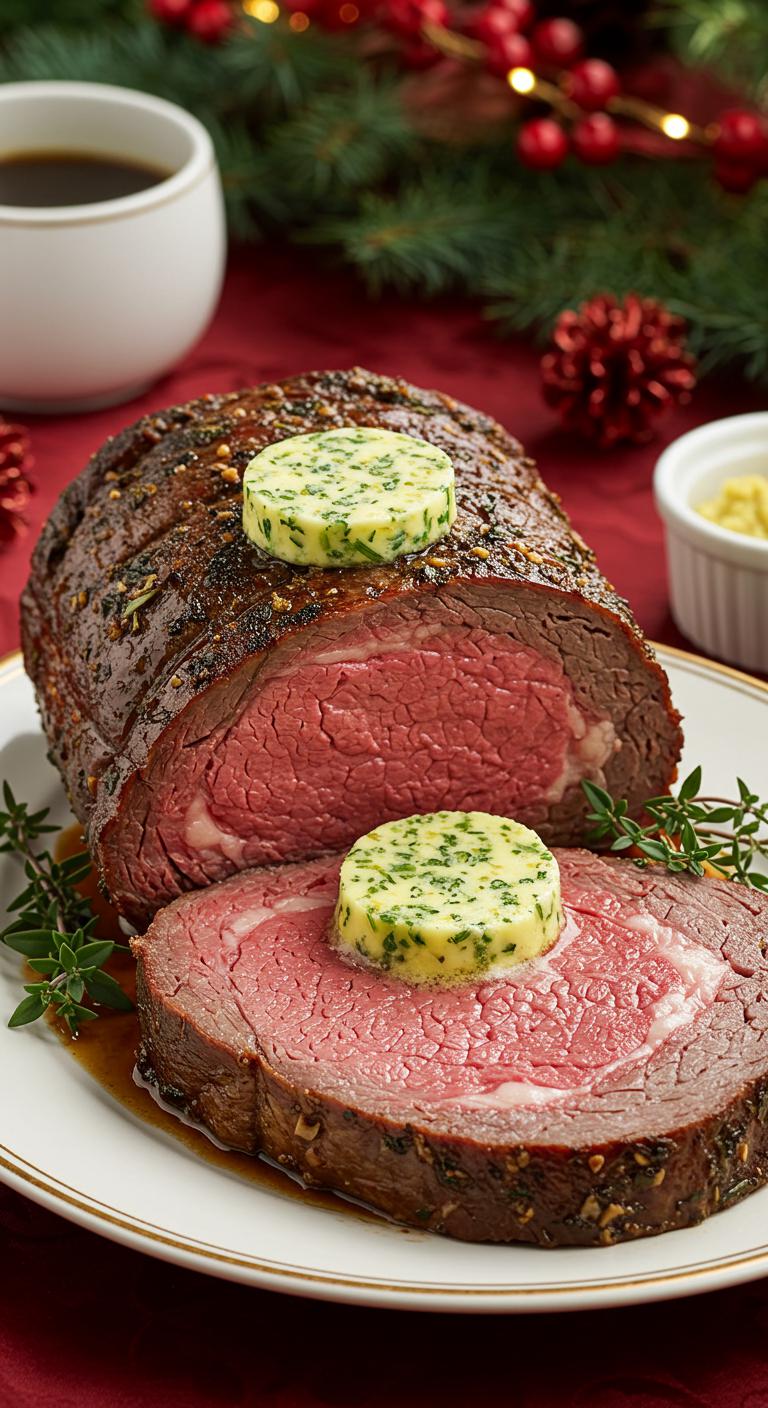 Slow-Roasted Prime Rib with Herb Garlic Compound Butter — buttery, fragrant, and impossibly tender, perfect for holiday centerpieces.