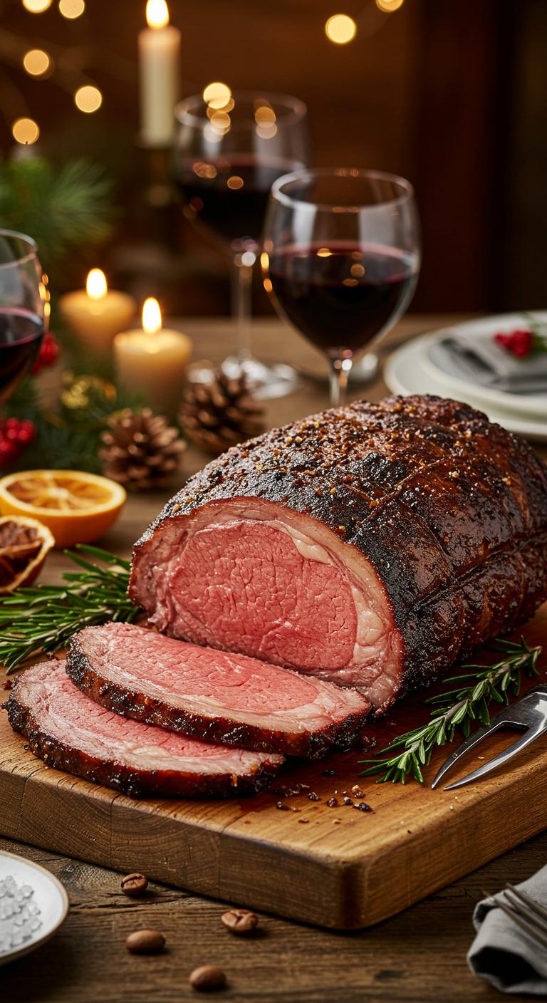Coffee-rubbed prime rib with a smoky, crunchy bark — bold, savory, and perfect for a holiday centerpiece.