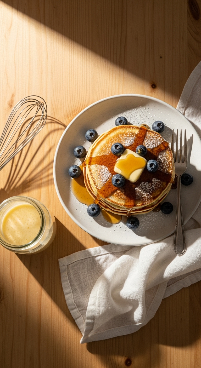 Plate stacks with extra butter and warm maple syrup. Add fresh berries and a dusting of powdered sugar. Pair with strong coffee or citrusy tea. Store cooled pancakes in an airtight container up to 3 days or freeze layers with parchment. Reheat in a toaster or oven. Great for lazy mornings or brunch guests.