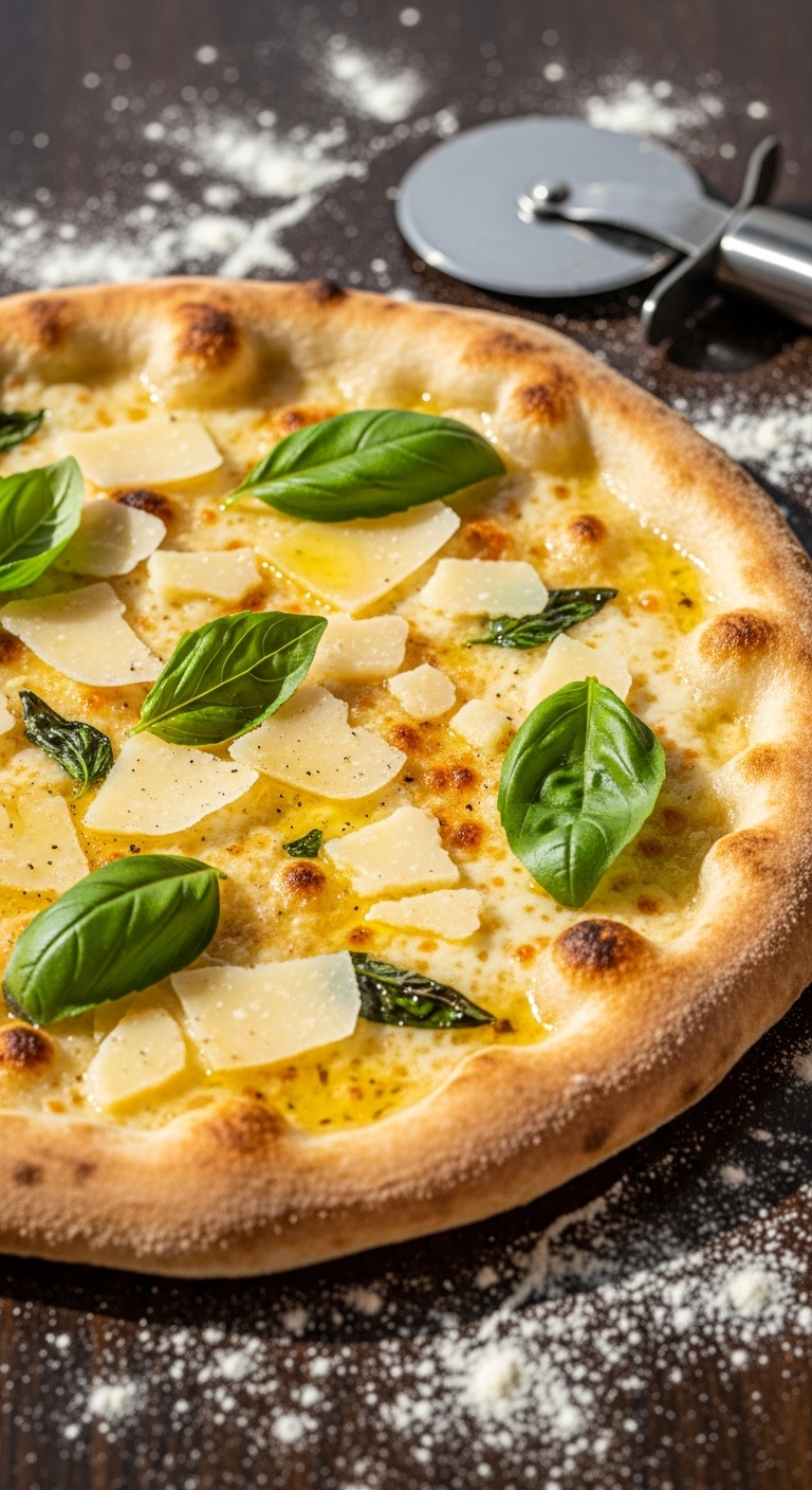 Serve whole or slice into wedges. Add fresh arugula, shaved Parmesan, and chili flakes for contrast. Pair with a crisp salad and sparkling water. Store leftover slices in the fridge up to 2 days; reheat in a hot oven. Make-ahead tip: prepare dough and refrigerate up to 24 hours for slightly deeper flavor.