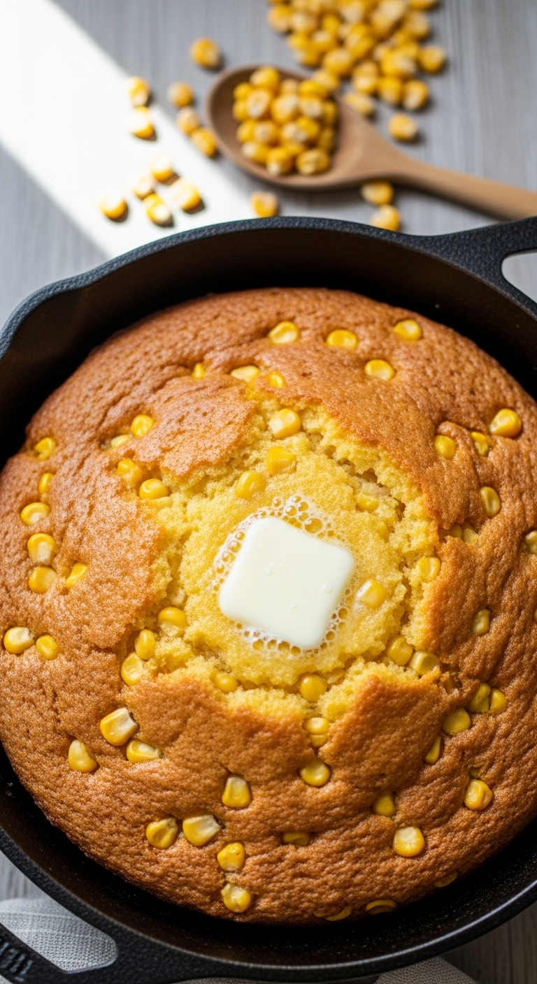 - Bake 18–22 minutes until top is golden and a toothpick comes out clean. Cornbread should pull away slightly from the skillet edges.