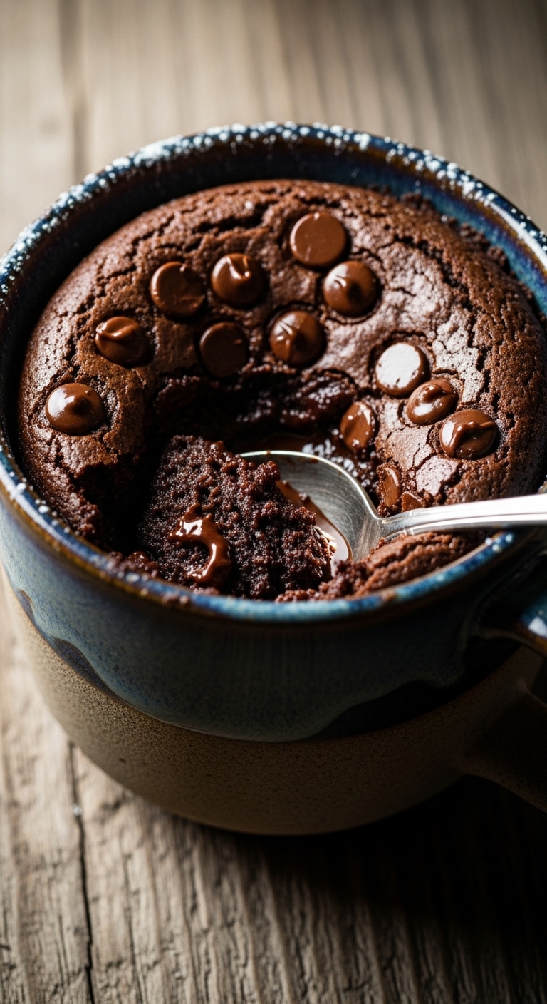 Serve straight from the mug with ice cream or whipped cream. Garnish with extra chocolate chips or a drizzle of caramel. Best enjoyed immediately. For make-ahead, mix dry ingredients and store, then add wet when ready. Great single-serve dessert for evenings.