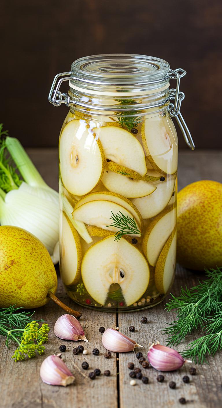 Bright, crisp quick-pickles that pair sweet pears with anisey fennel and fresh dill — tangy, crunchy, and utterly snackable.