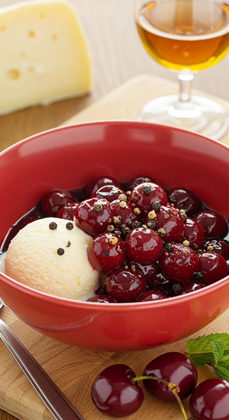 Bright, boozy cherry compote with a peppery kick — perfect spooned over cheese or ice cream.