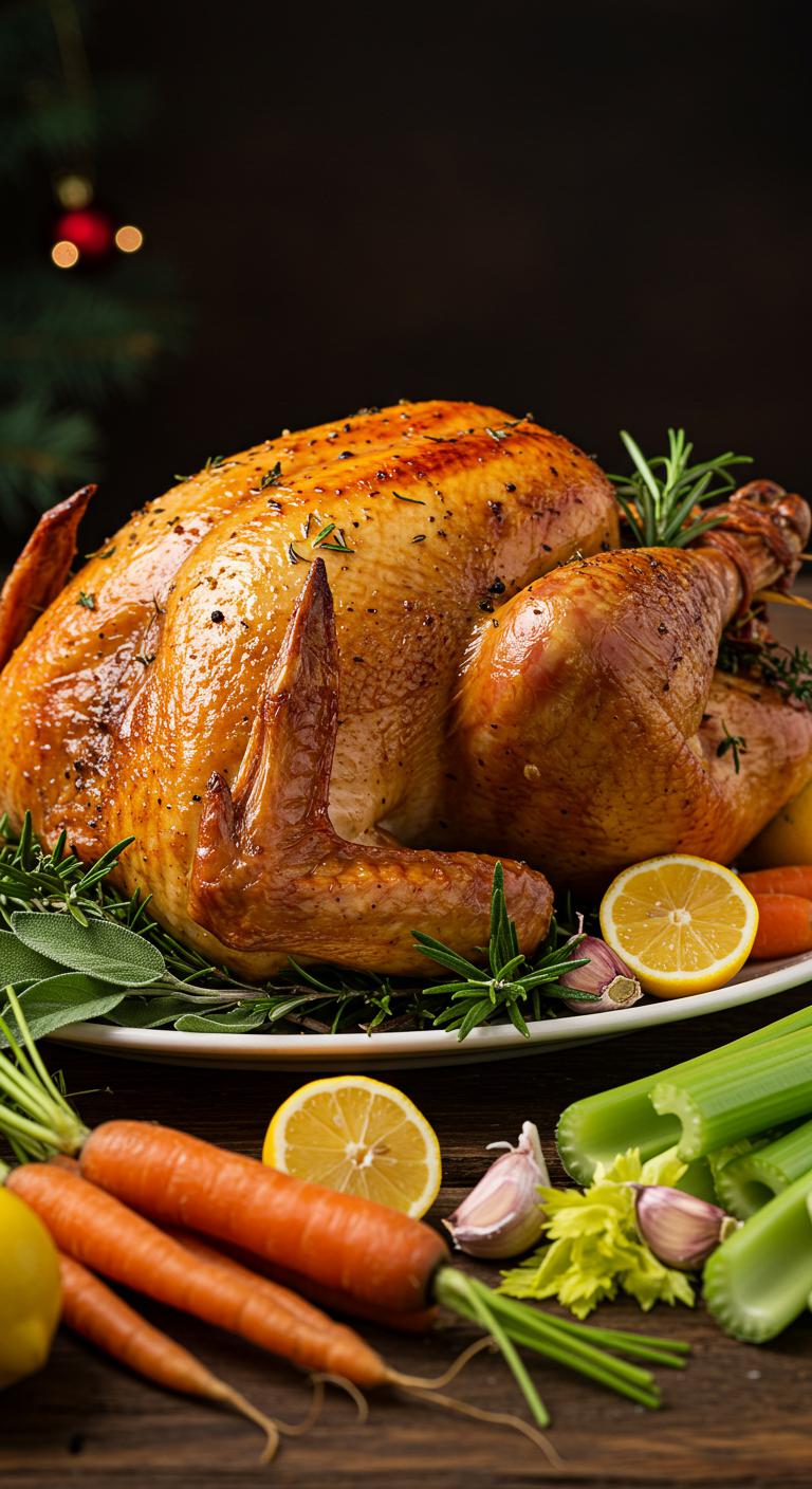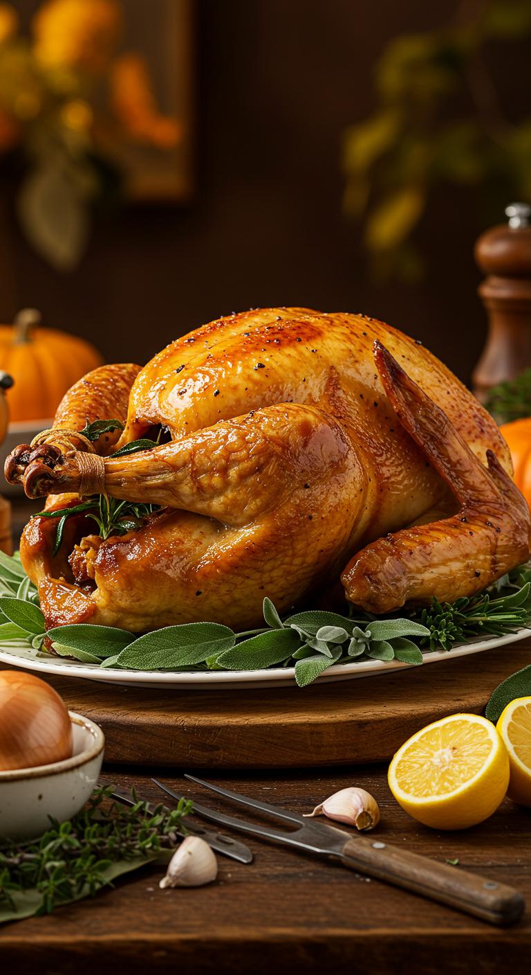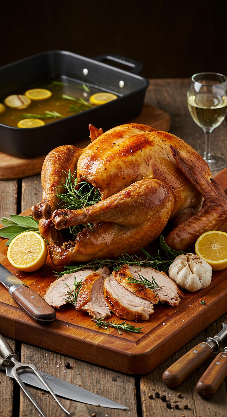 A bright, aromatic herb-roasted turkey with lemon and garlic — crispy skin, juicy meat, and a fragrant citrus-herb punch.